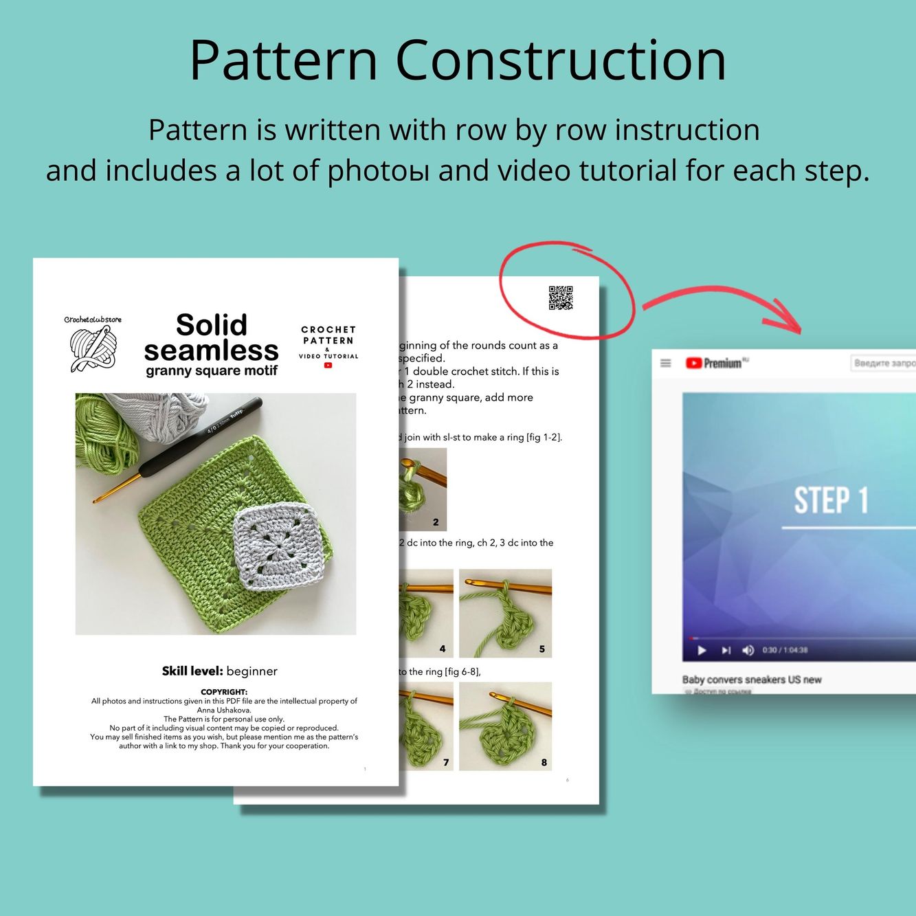 Beginner-friendly solid granny square crochet pattern PDF, easy fun granny square, motif for baby blanket, basic granny square for tote bag
