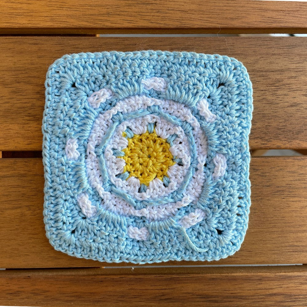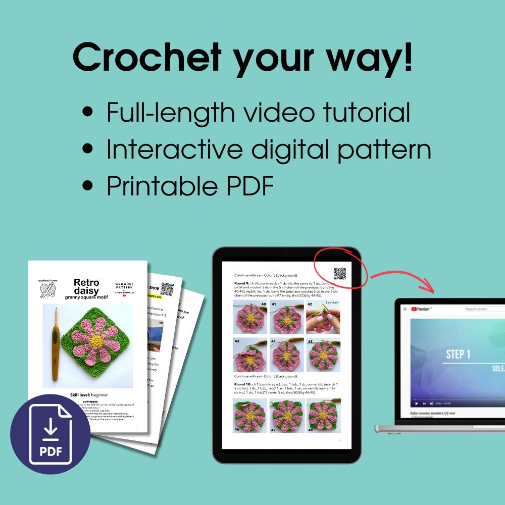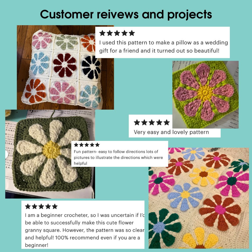 The Retro daisy Granny square crochet pattern includes: