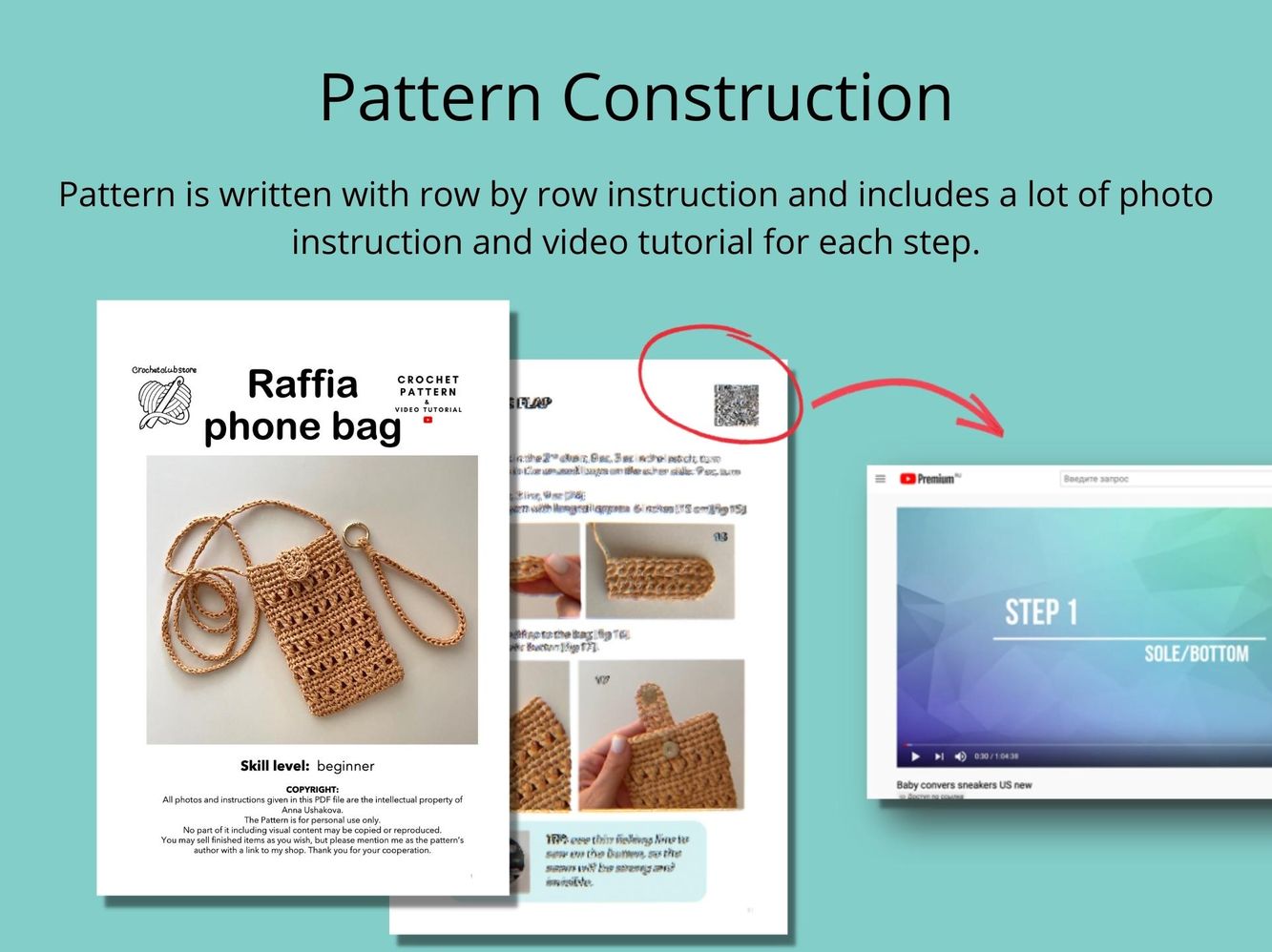 💚 Includes shoulder strap and wrist handle crochet instruction