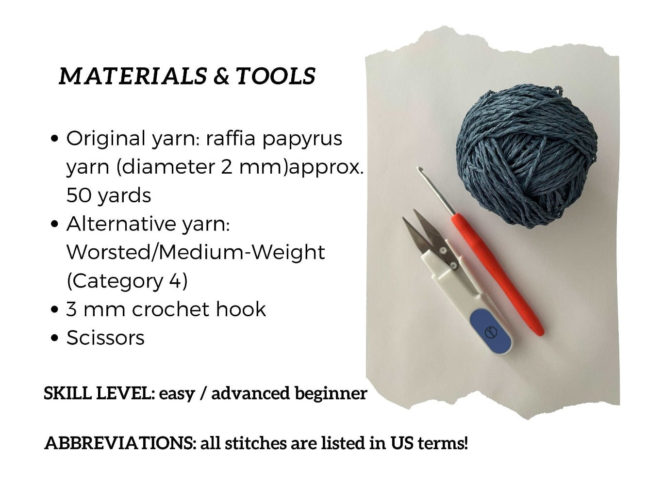 Original yarn: raffia papyrus yarn (diameter 2 mm) approx. 50 yards