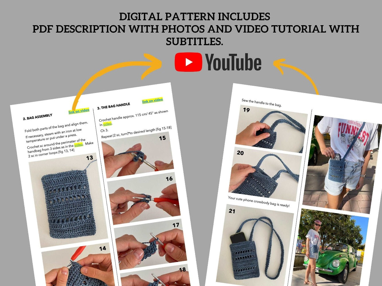 This easy to follow crochet pattern of adorable crossbody phone bag combines design with practicality.
