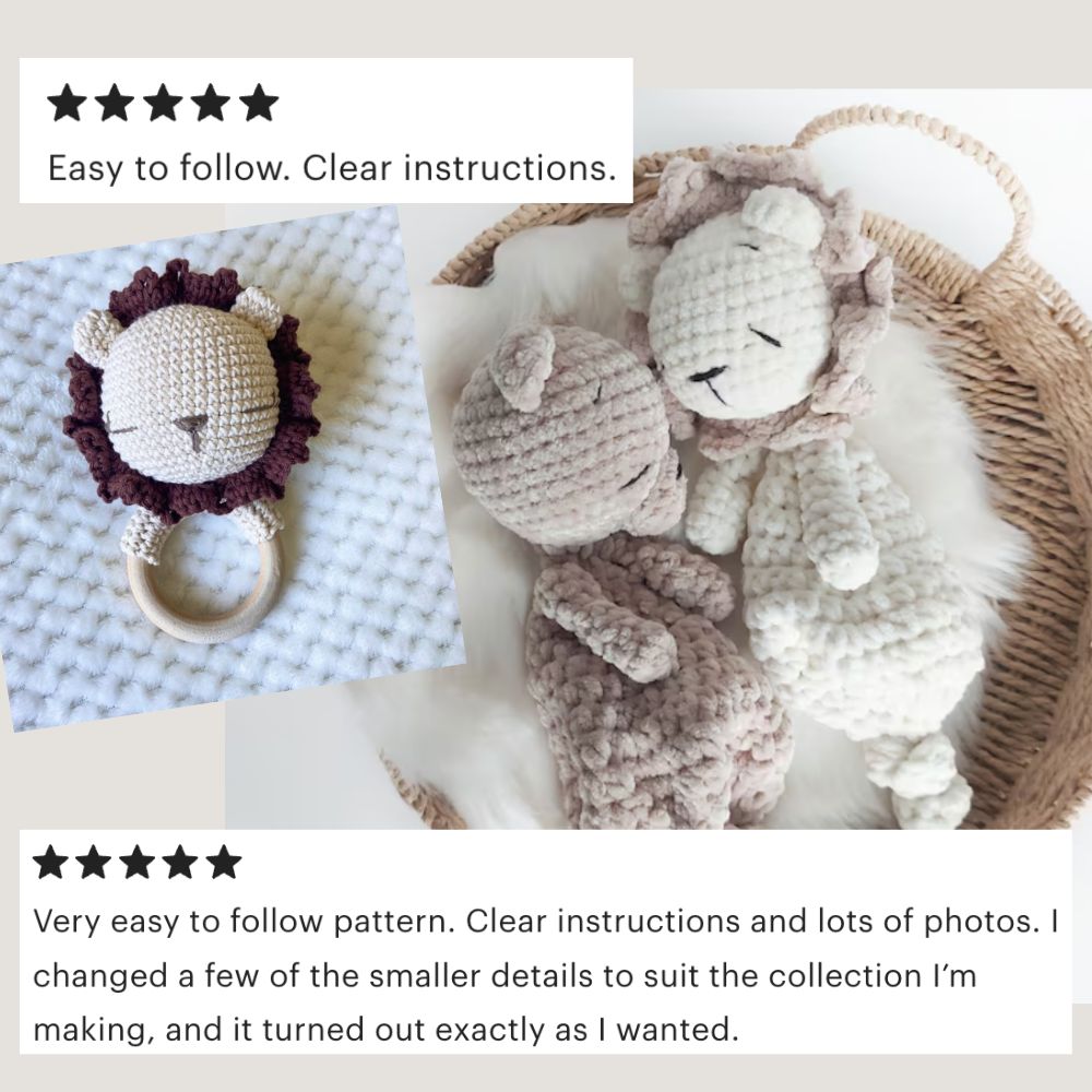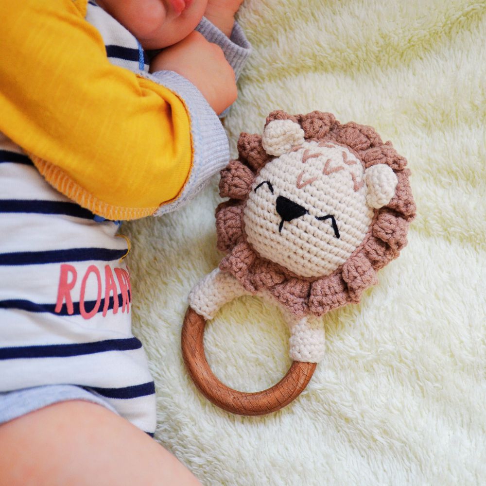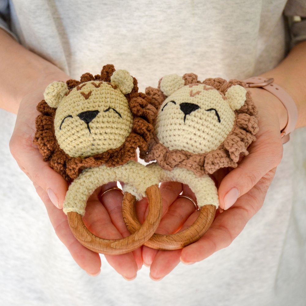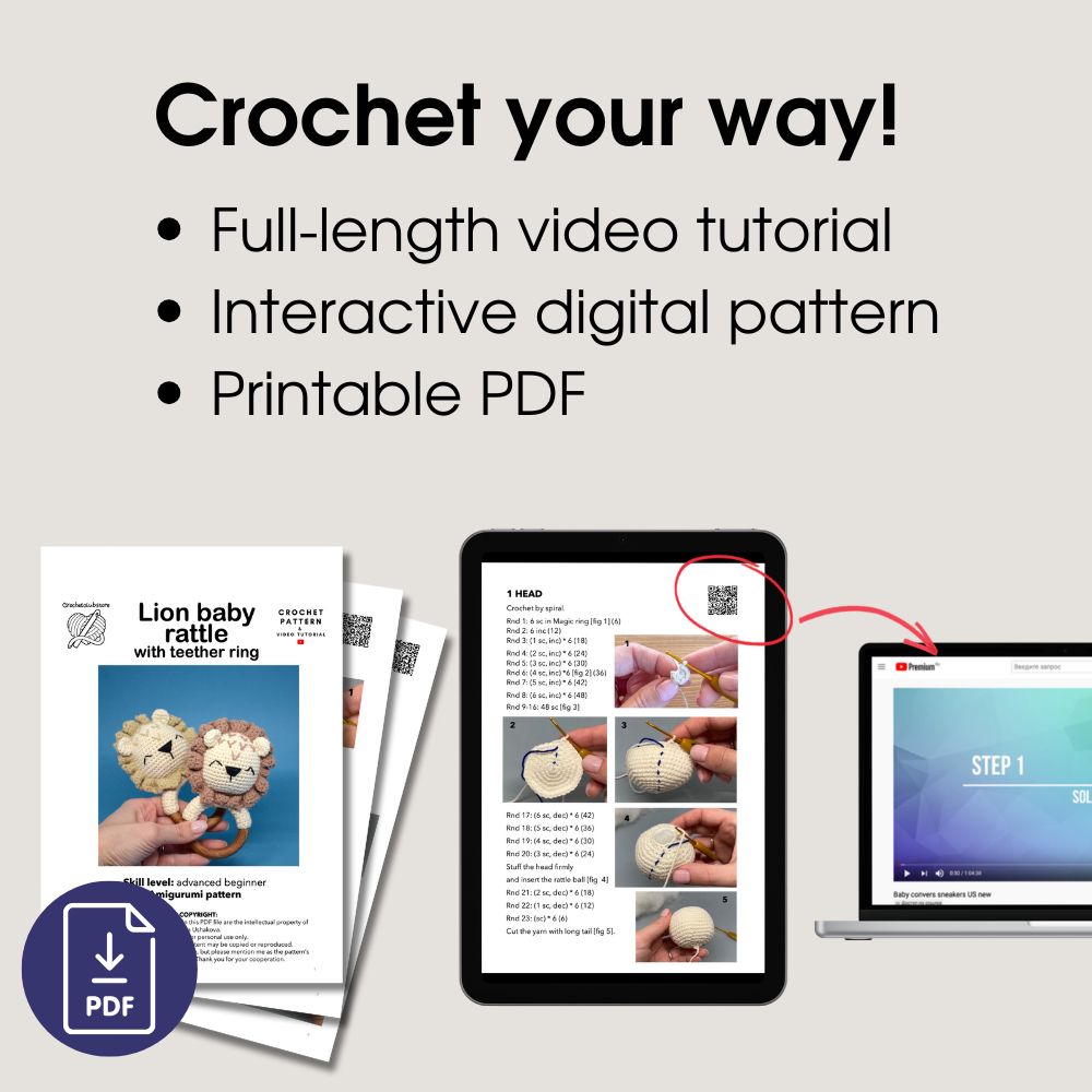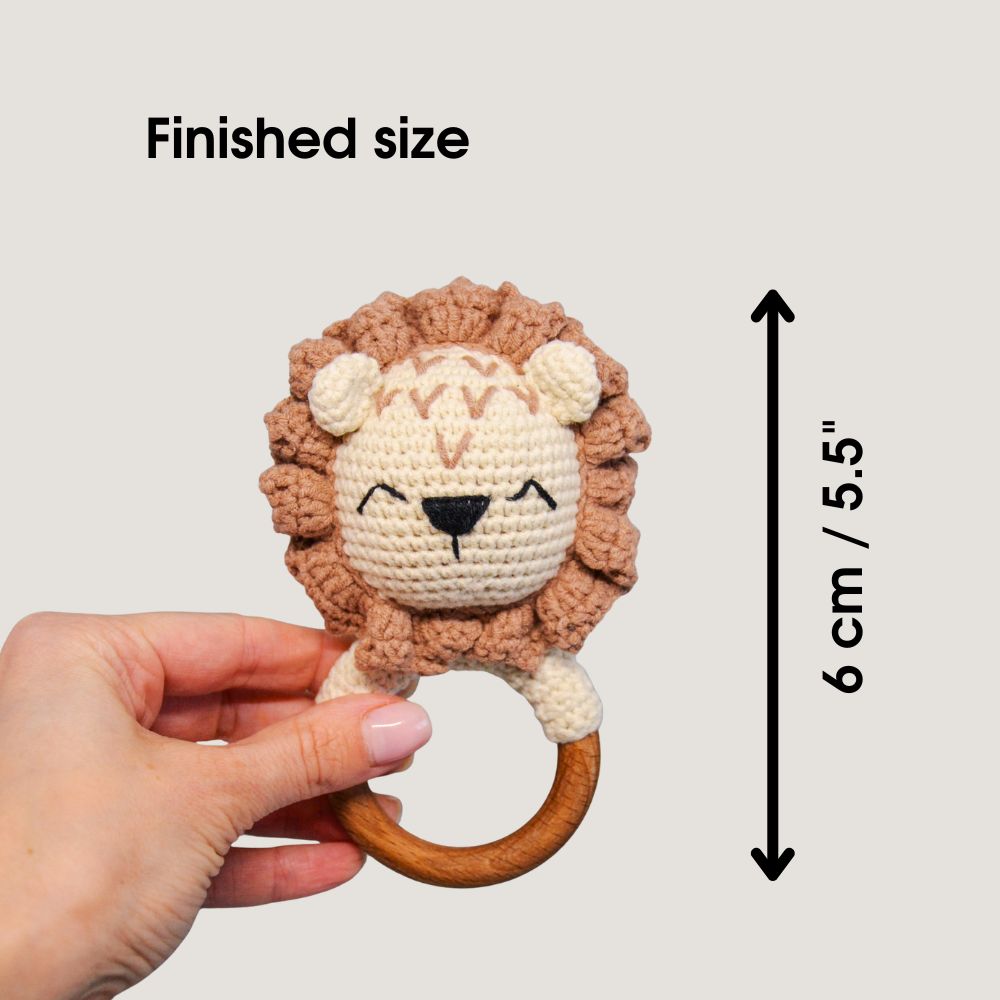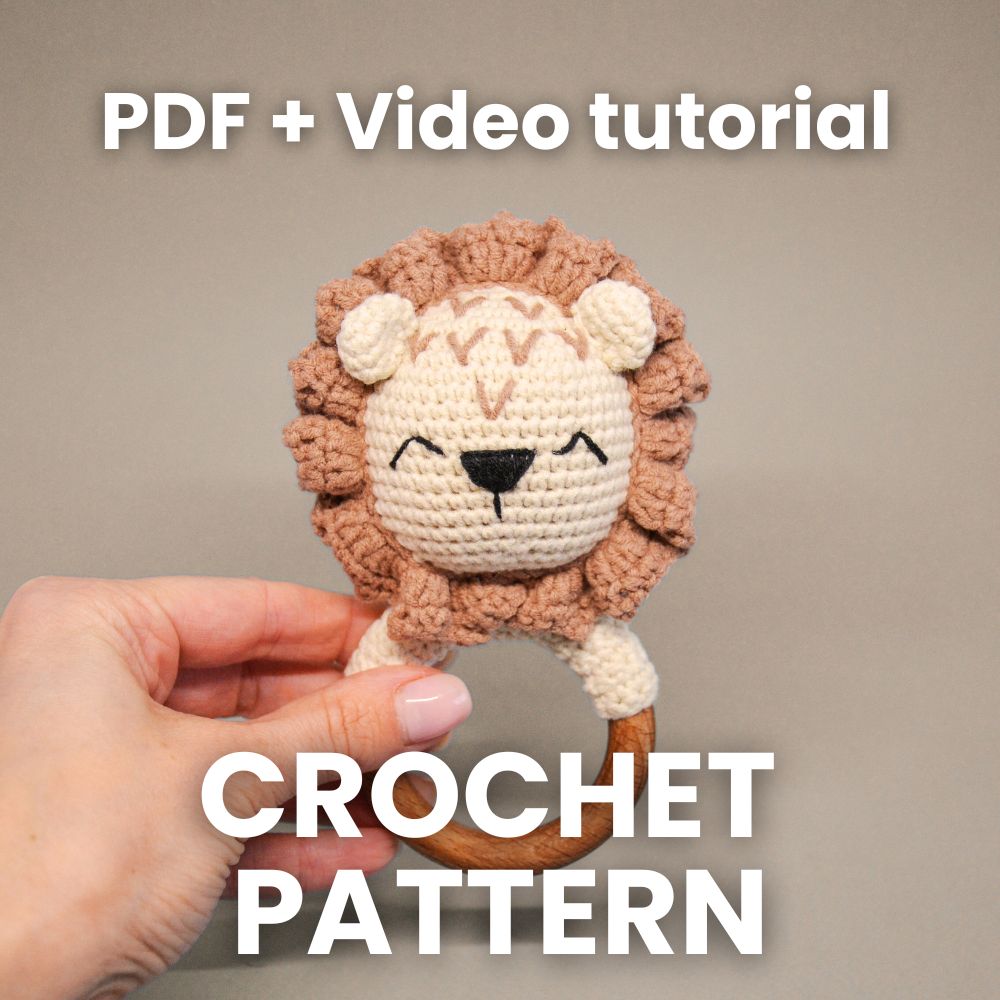 Create your own adorable crochet lion baby rattle with this PDF pattern + full video tutorial!
