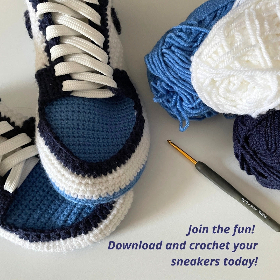 My crochet patterns are designed to be easy to follow, even for beginners. These cozy and stylish sneaker slippers are perfect for wearing around the house and are inspired by the design of a well-known brand. These unique and high-quality designs ensure a fun and engaging crochet experience with stunning results.