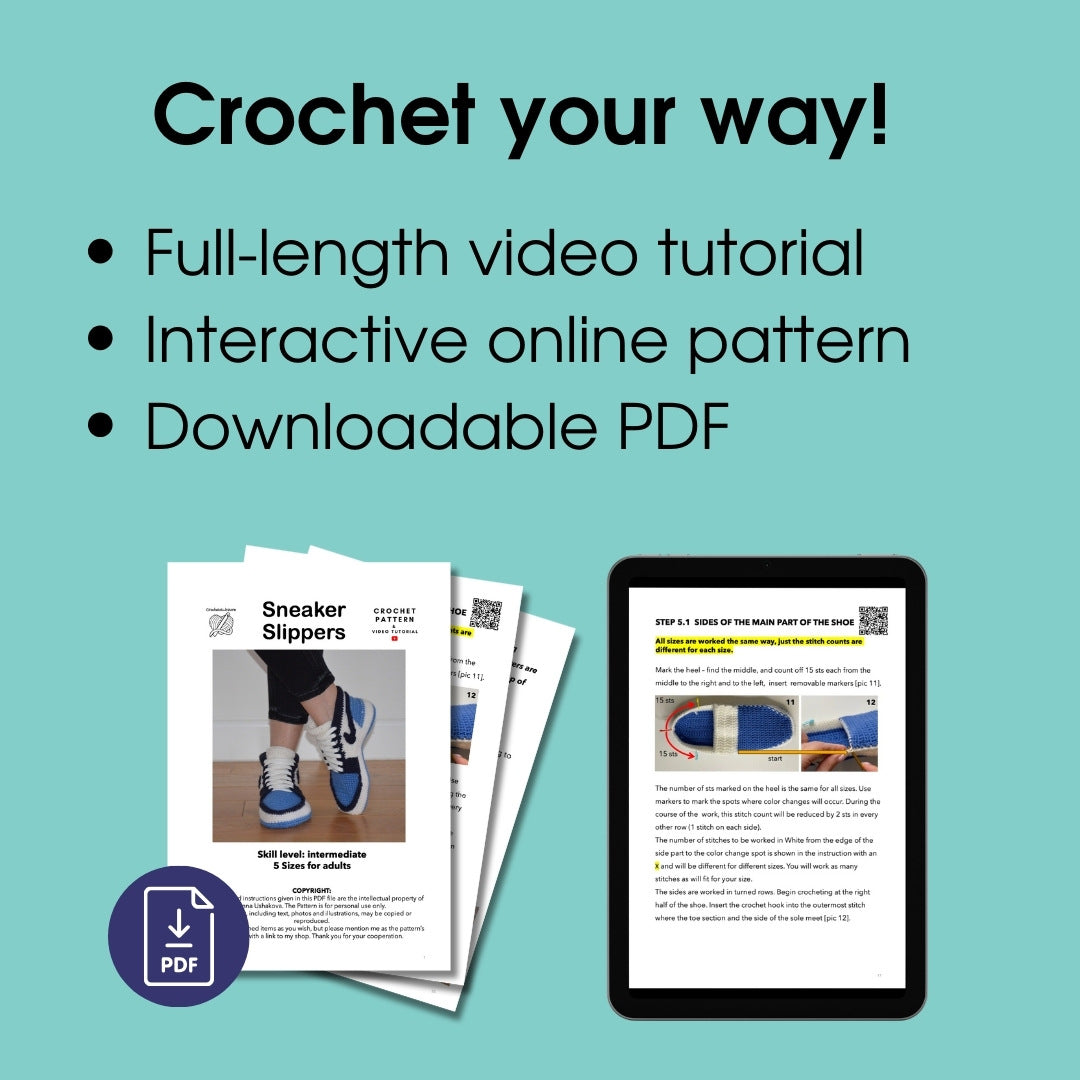 Sneaker slippers for adults crochet pattern